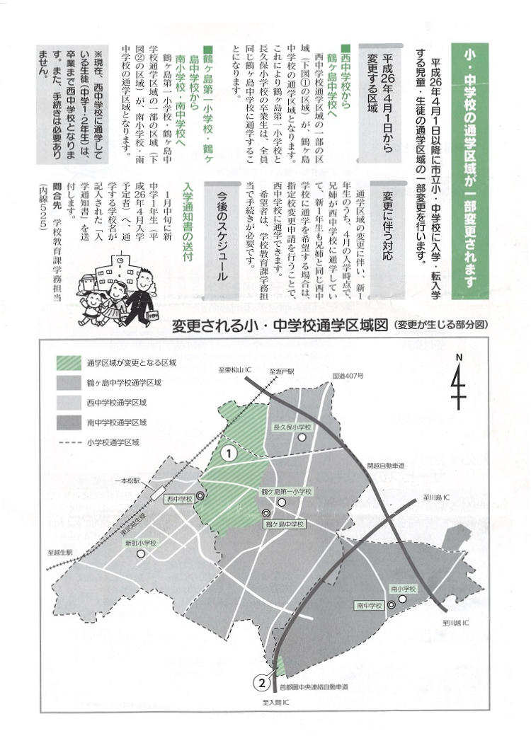 小・中学校の通学区域が一部変更されるとのことです。