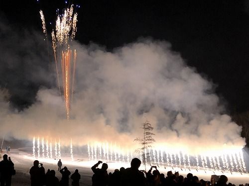 夜には花火や